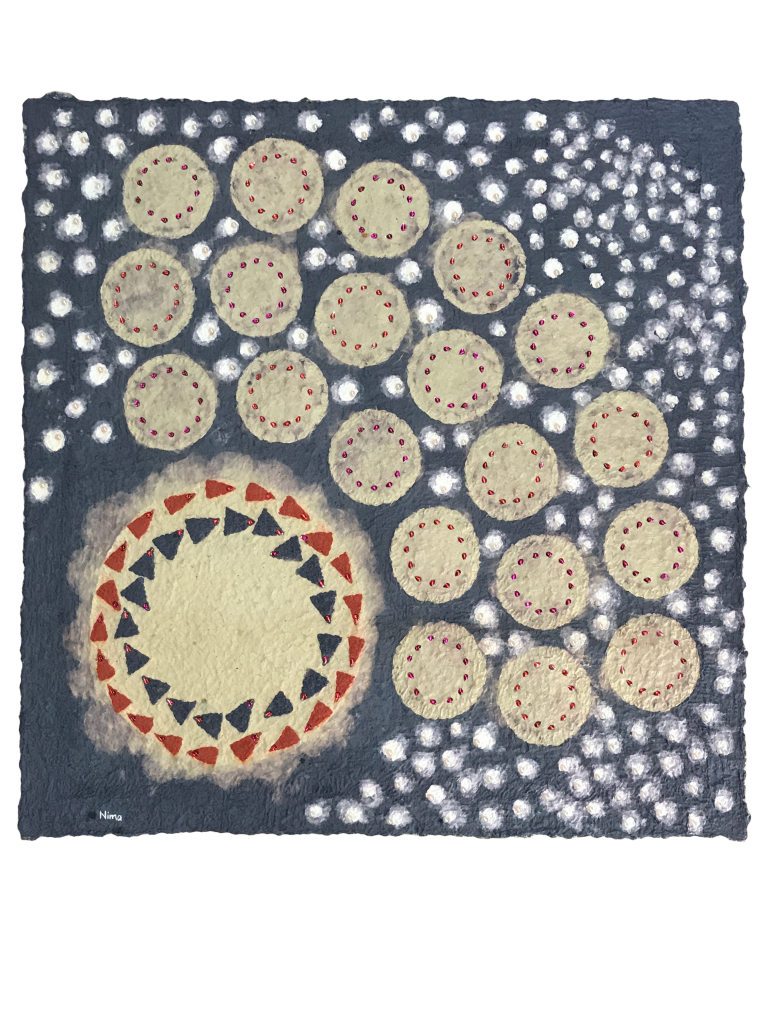 I was inspired by my professor Wauke Choken. My work entails engaging with the concept that I want to bring out as a work of art. It obliges me to exercise patience in the preparation and use of the paper fibers. My paper works are complete only after they have been dried with the sun and wind. So, I engage with nature too.
